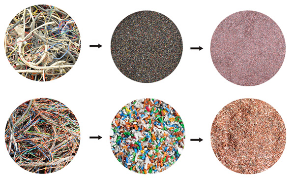 銅米機(jī)可以加工處理多種規(guī)格的廢舊電線、銅芯線、鋁芯線、銅單線、多絲護(hù)套線、耳機(jī)線、數(shù)據(jù)線、電腦線、地埋線、電機(jī)線、阻燃線、防水線、照明線、工廠廢線頭、插板線、電器插頭線、拆車線、電路線等,但是這些線徑粗細(xì)不要大于20mm。
